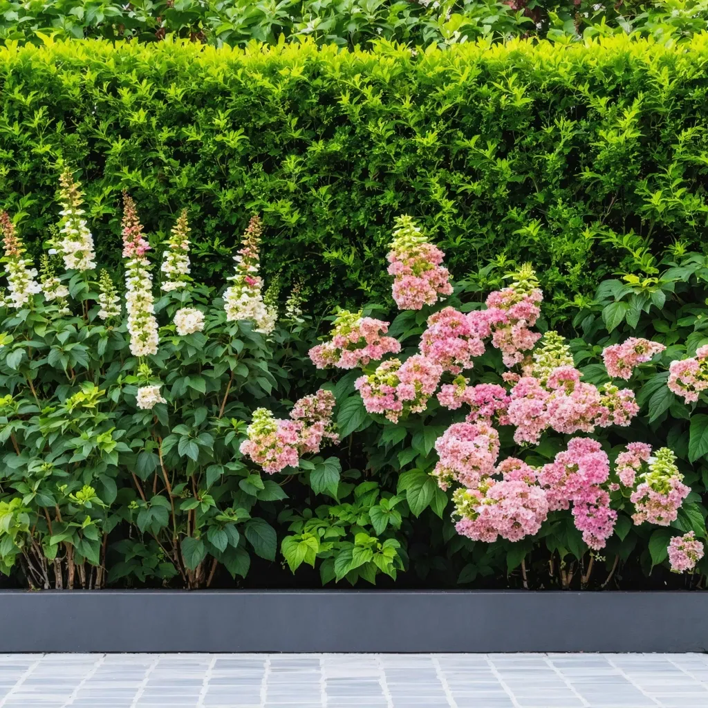 Современные тренды включают использование спиреи не только для классических изгородей, но и для создания многоуровневых композиций и миксбордеров. Среди актуальных направлений: